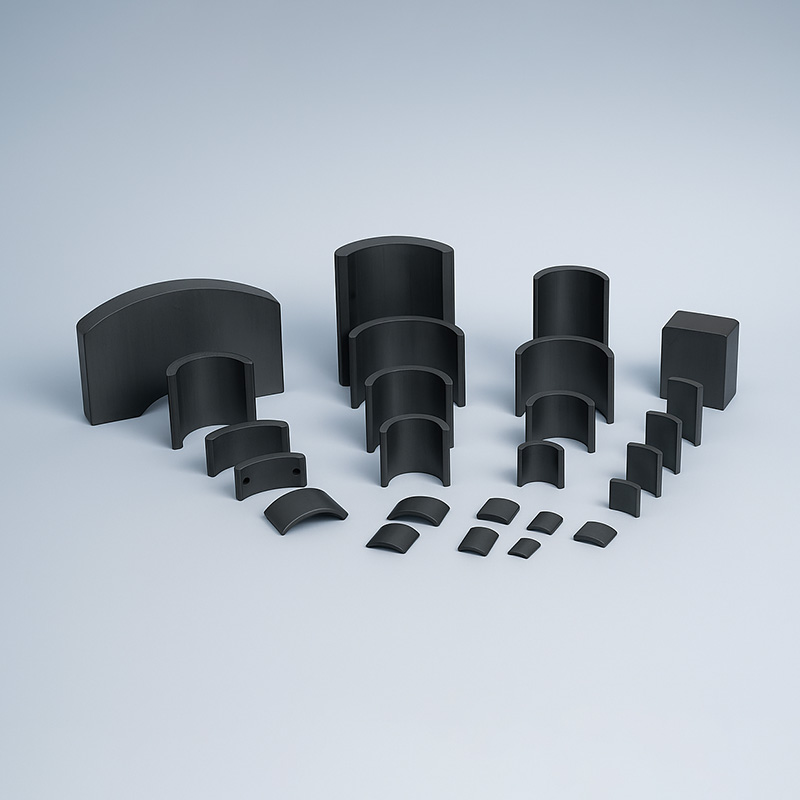 Ferrite segment magnets provide moderate magnetic force and are extremely stable under thermal and chemical stress. Their shape is specifically designed for radial magnetic applications, offering efficient flux distribution in motor assemblies.